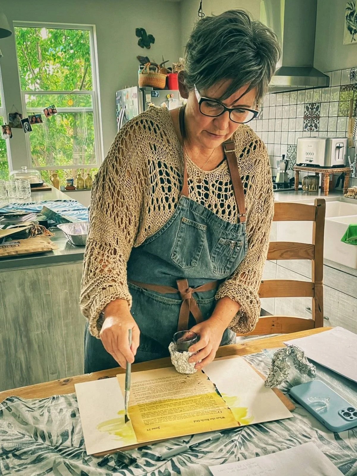 Kerry | Artist + Educator blending nature, texture, and storytelling through mixed media, eco-printing, cyanotype, encaustic, and slow stitching.