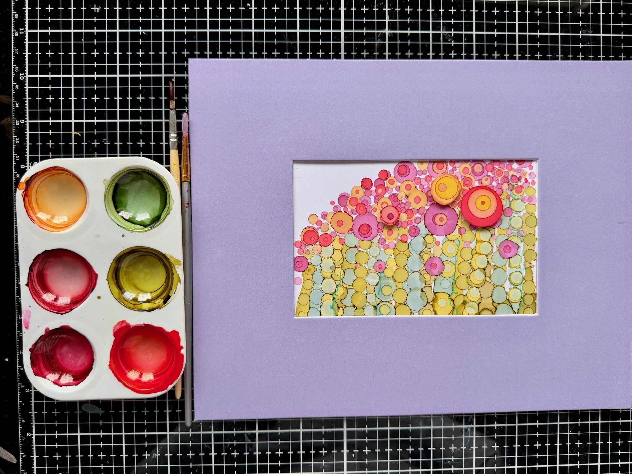All of that experimenting eventually led to something unexpected: a whimsical alcohol ink flower garden. The playful shapes and bold colours reminded me a little of a Dr. Seuss illustration—loose, expressive, and full of personality.